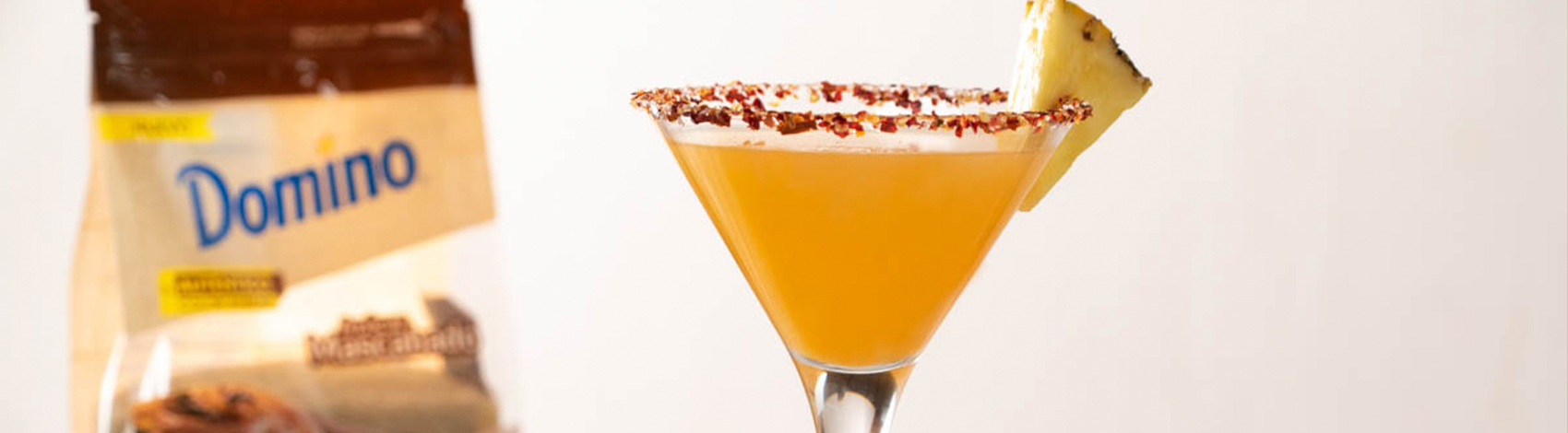 Sirve en una copa martinera, acompaña con rodajas de limón y piña en triángulo.