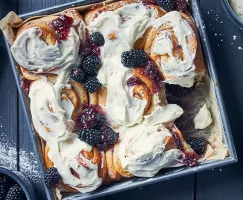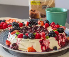 Panqué de Frutos del Bosque Con Glaseado de Queso Crema